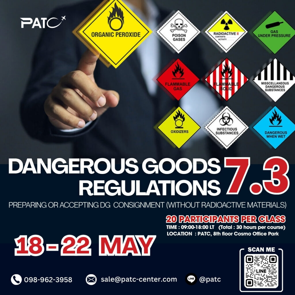Pattaya Aviation Training Center (PATC) offers this specialized DGR course for personnel responsible for processing and accepting dangerous goods consignments in air transport.